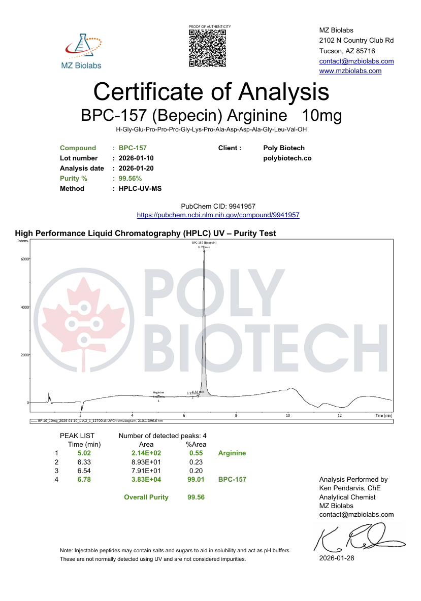Debido a su amplio interés en la ciencia regenerativa, el BPC-157 se ha investigado para la cicatrización del tejido conectivo, estudios de tendones y ligamentos, y la protección del revestimiento intestinal. A menudo se combina con el TB-500 en la investigación sobre recuperación debido a sus mecanismos complementarios.