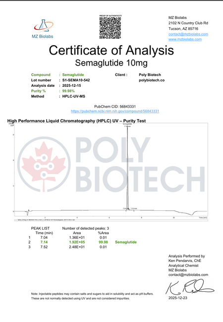 Poly Biotech no proporciona información médica ni sobre la dosificación. Si desea recibir apoyo profesional sobre péptidos bajo la supervisión de un médico, haga clic aquí.